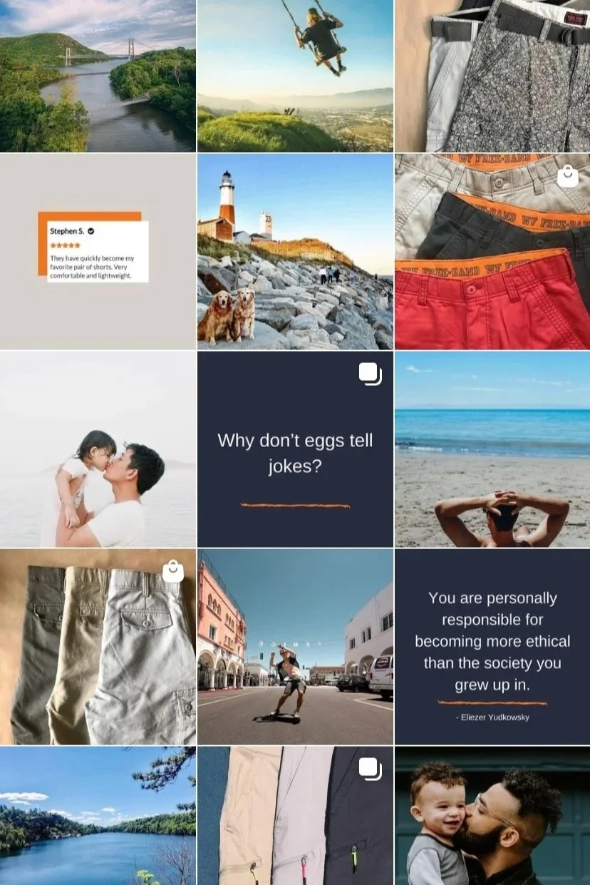 Pre-refresh (right): hang tag, joker tag with QR code, stickers Post-refresh (left) Simplief, folded hang tag with a pop of color